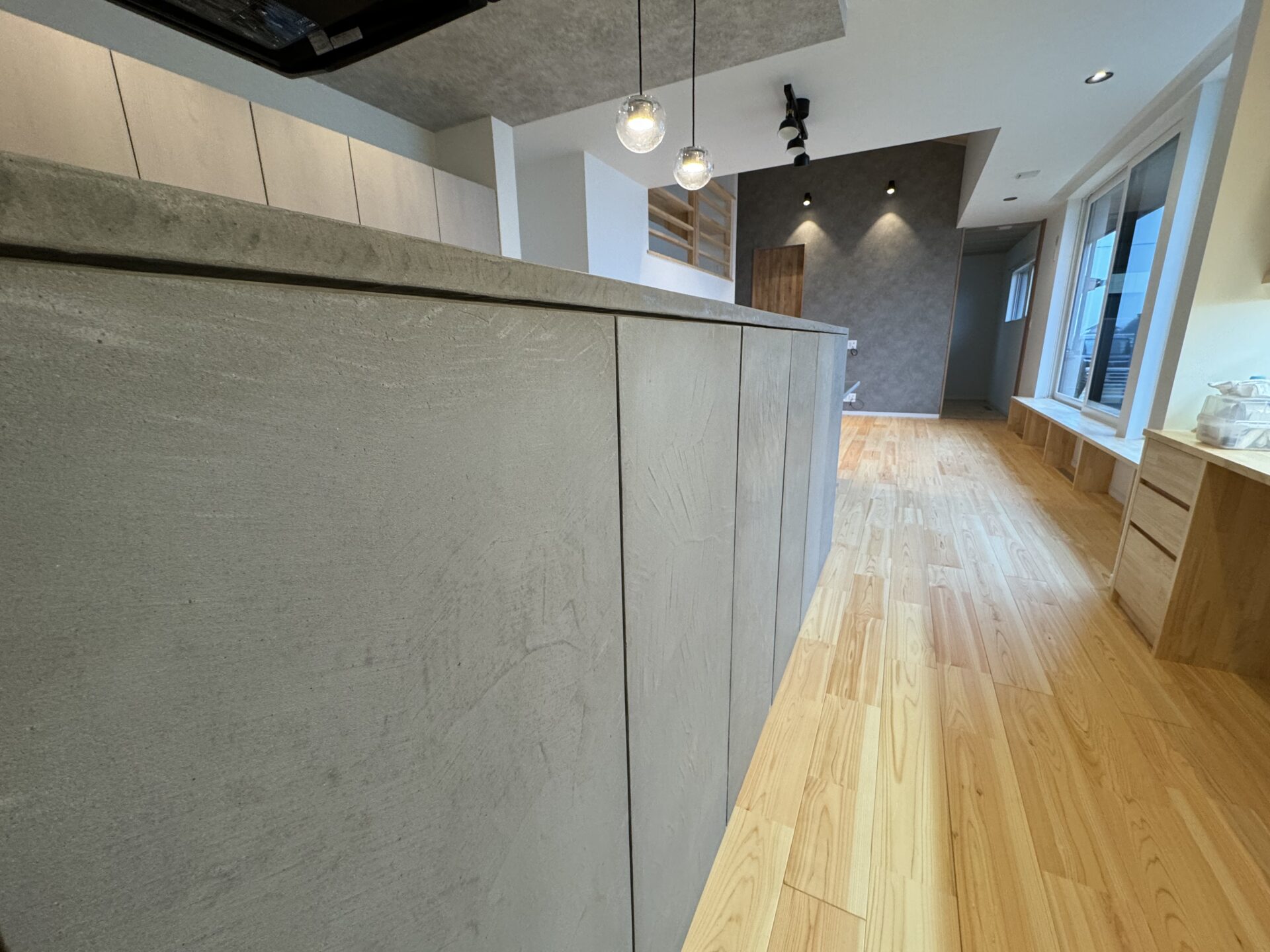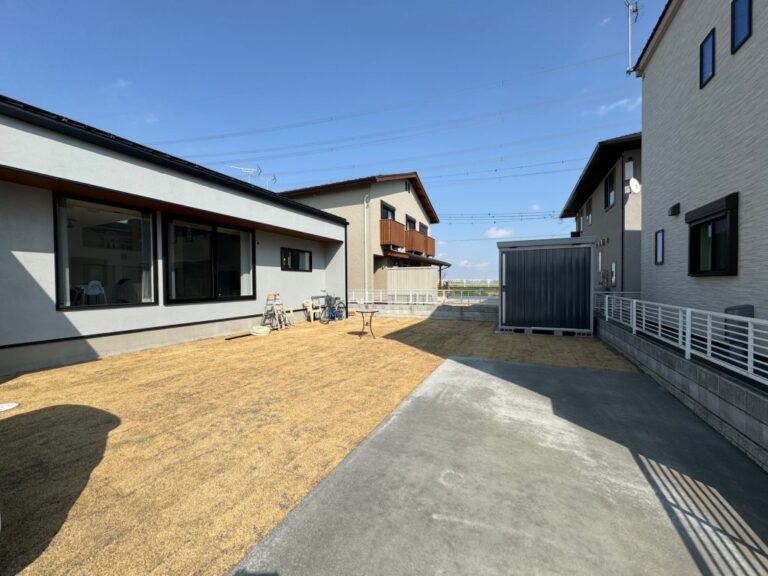 白い塗り壁の外壁に窓周りにはモールを造作してアクセントを付けました。一見外観は平屋のように見えますが […]