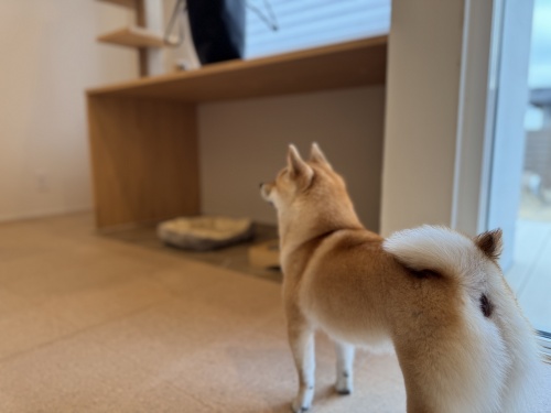 ワンちゃんは狭いところが落ち着くため、リビングの一角に専用スペースを設けることで、視線が届き安心感を覚えます。また床はタイル貼りのため、夏はひんやりして気持ちいいです。体温調節の苦手なワンちゃんには過ごしやすいスペースです。