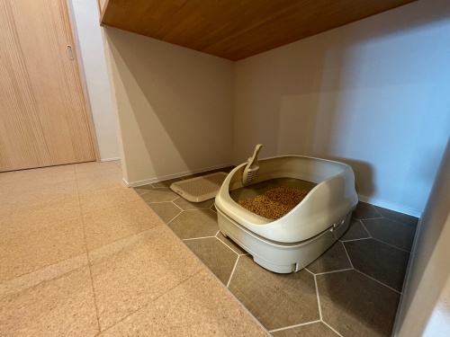 専用のトイレスペースを設けることで室内も清潔に保たれ、床にタイルを貼ることでお掃除もらくらく。動物たちは繊細でキレイ好きなのでとても安心ですね!