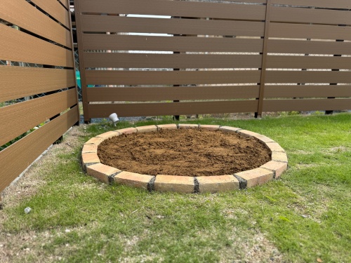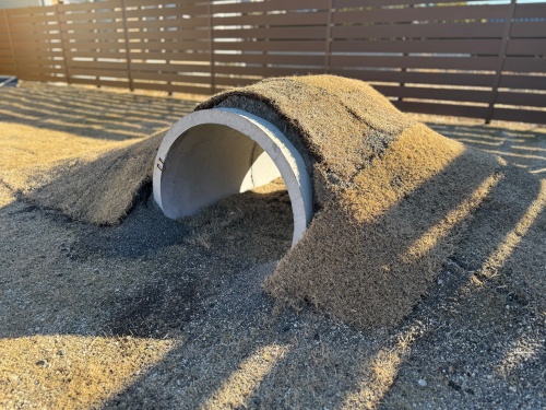 庭を走り回る愛犬くんの遊具として頑丈なコンクリートとヒューム菅をトンネル用に設置。楽しんでくれるといいなあ♪