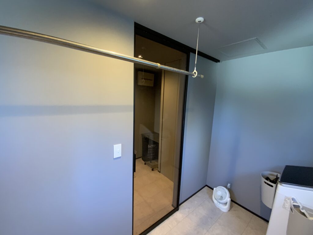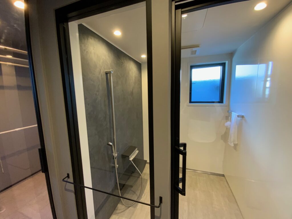 かつガラスドアの横にも更にガラスパネルを造作して圧迫感の無いシャワー室になりました。