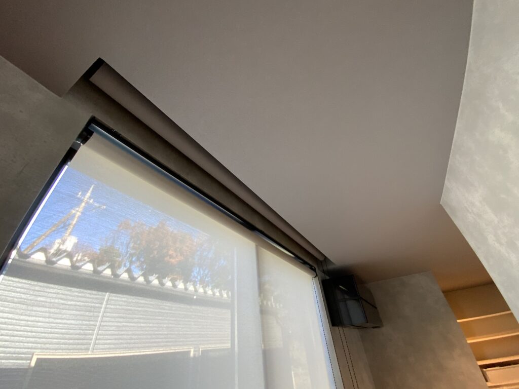 カーテンボックスを作り、天井に納まるのでスッキリですね。