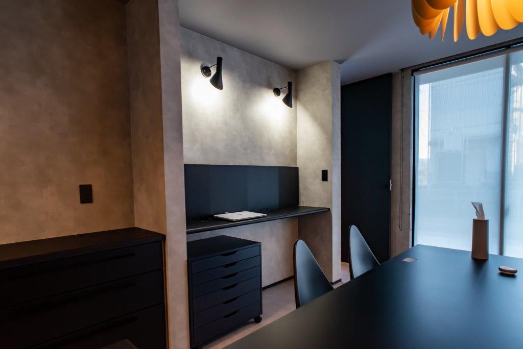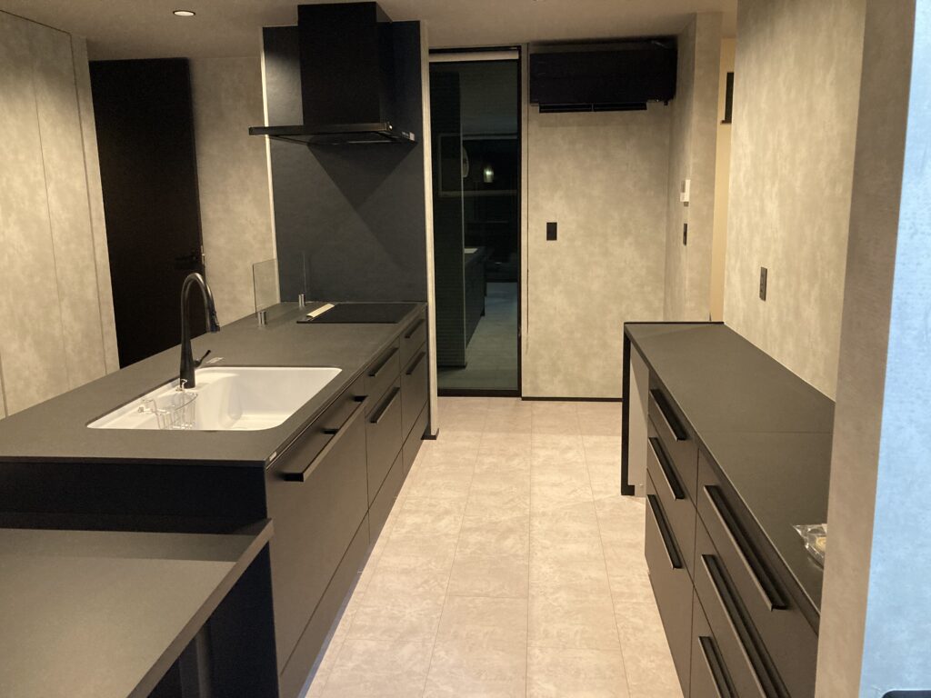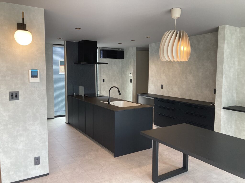 外観とのバランスを考え、内装もグレーと黒を基調にしてシックな雰囲気にまとめました。