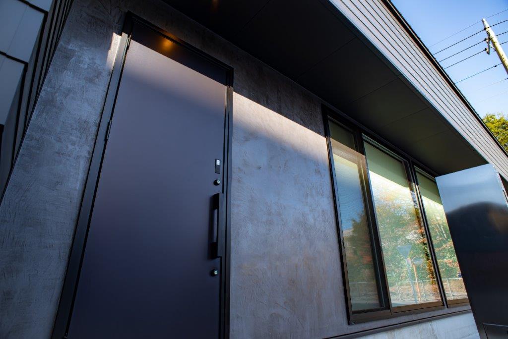 玄関ドアも余計なデザインの無いシンプルな片開きを採用。